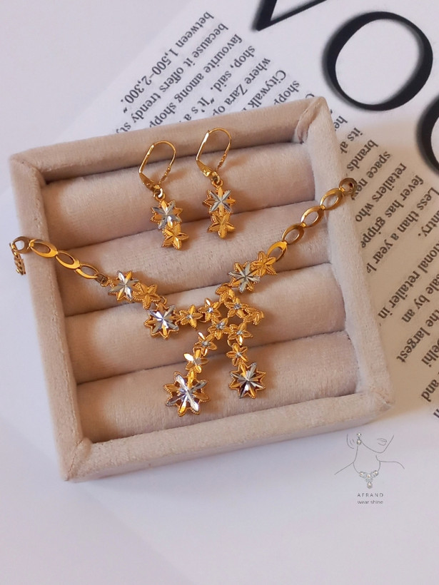 متاسفانه این کالا در حال حاضر موجود نیست. میتوانید از طریق لیست بالای صفحه، از محصولات مشابه این کالا دیدن نمایید.نیمست طرح طلا،طلایی،گوشواره قفل حلقه ای
