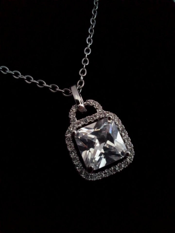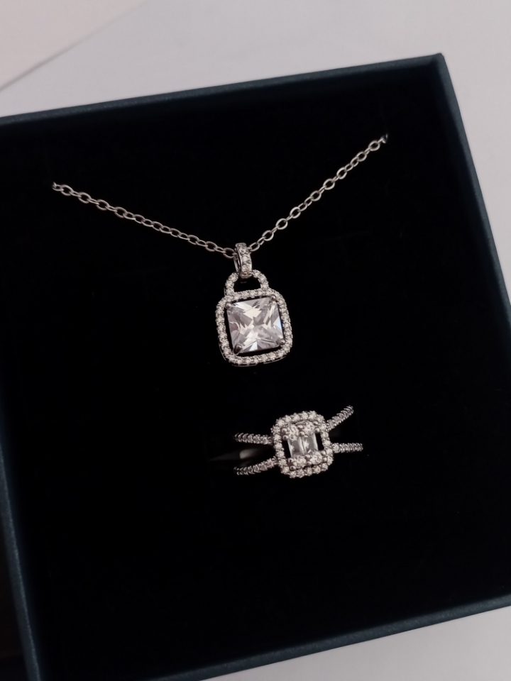 ست گردنبند و انگشتر جواهری انگشتر فری سایز آبکاری رادیوم باکیفیت نگین مخراج کاری مستر کوالیتی پلاک آبکاری رادیوم باکیفیت زنجیر استیل