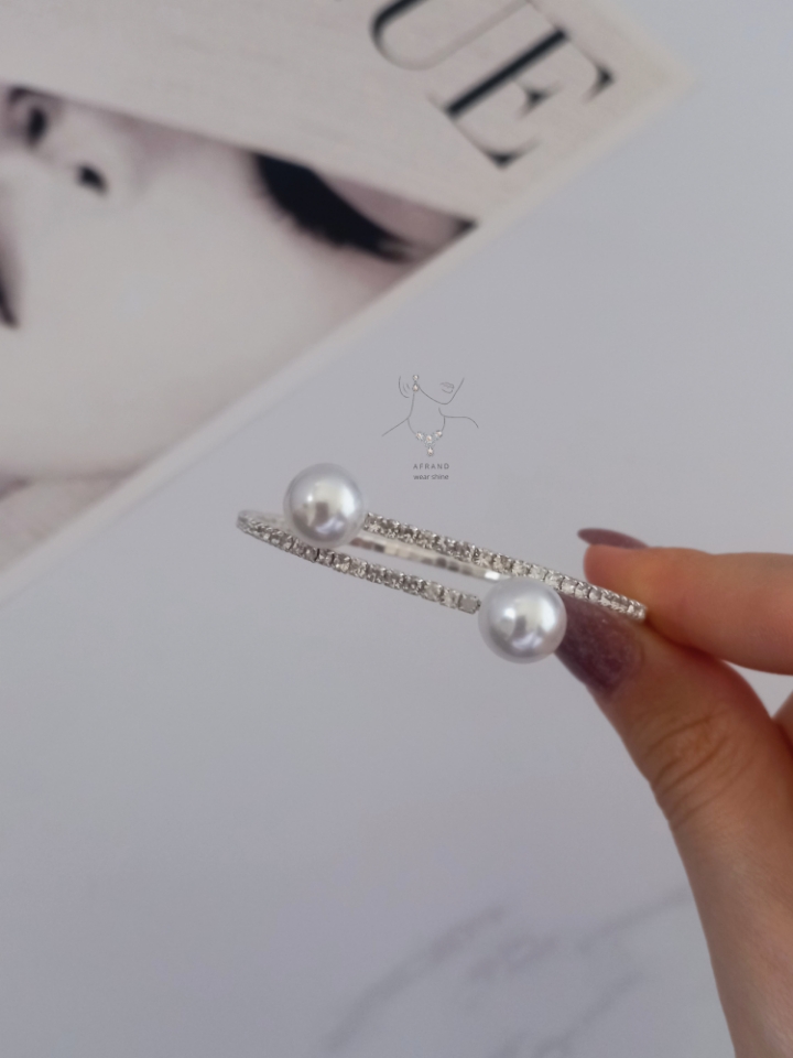 دستبند،بازوبند و پابند تنیسی مرواریدی نگین مخراج کاری منعطف و فنری فری سایز قابل استفاده بعنوان بازوبند،دستبند و پابند جنس استیل