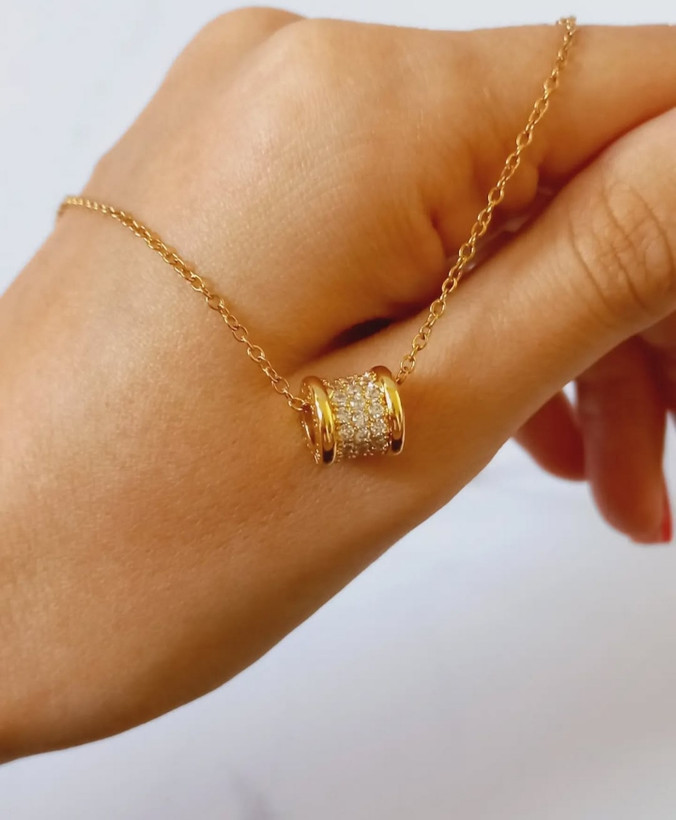 گردنبند مهره ای،رنگ طلایی،رنگ ثابت،ضدحساسیت،نگین مخراج کاری