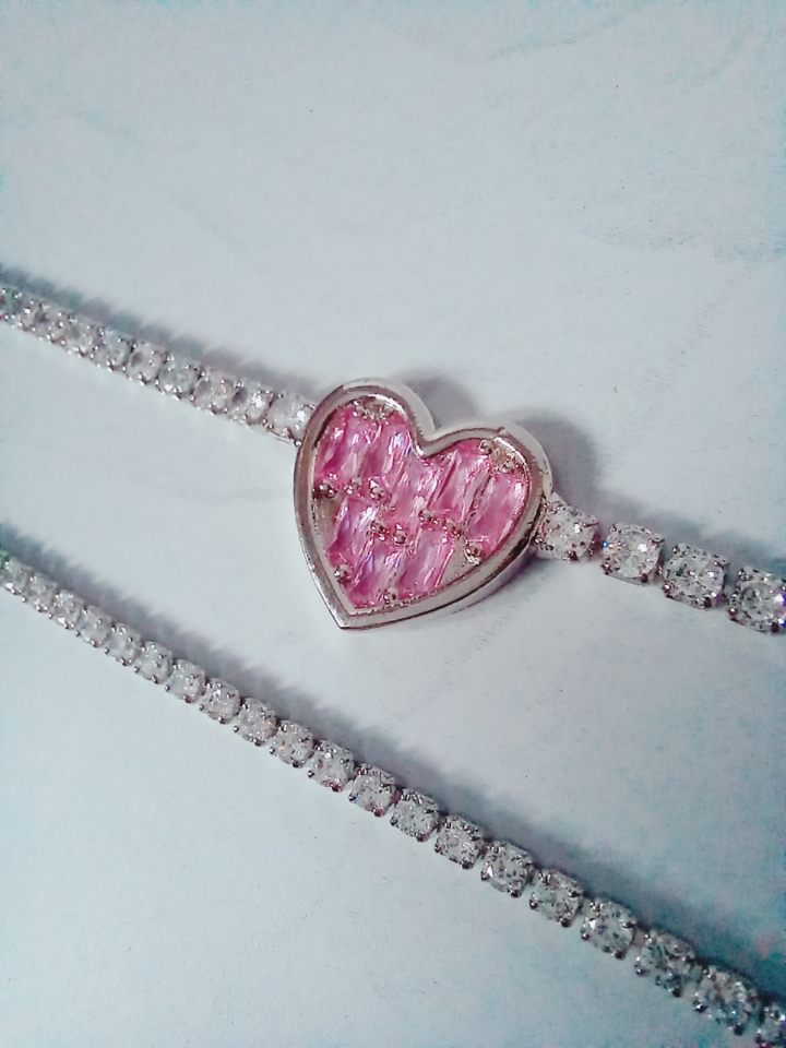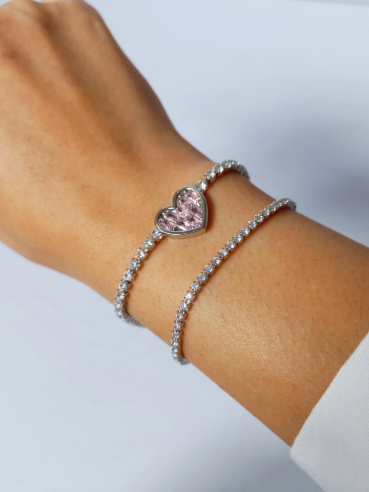 دستبند تنیسی ساده،دستبند تنیسی قلبی،نگین مخراج کاری،رنگ ثابت،ضدحساسیت