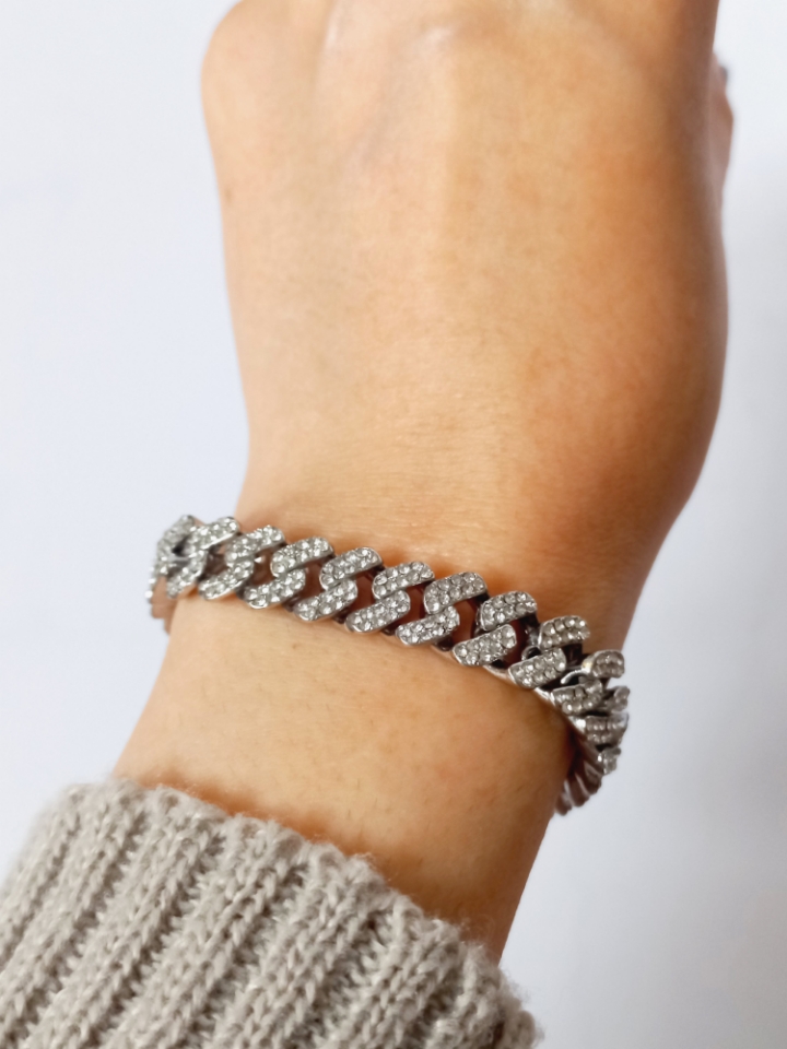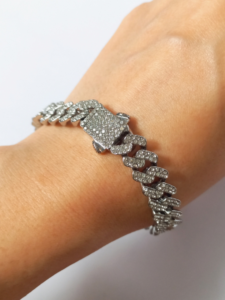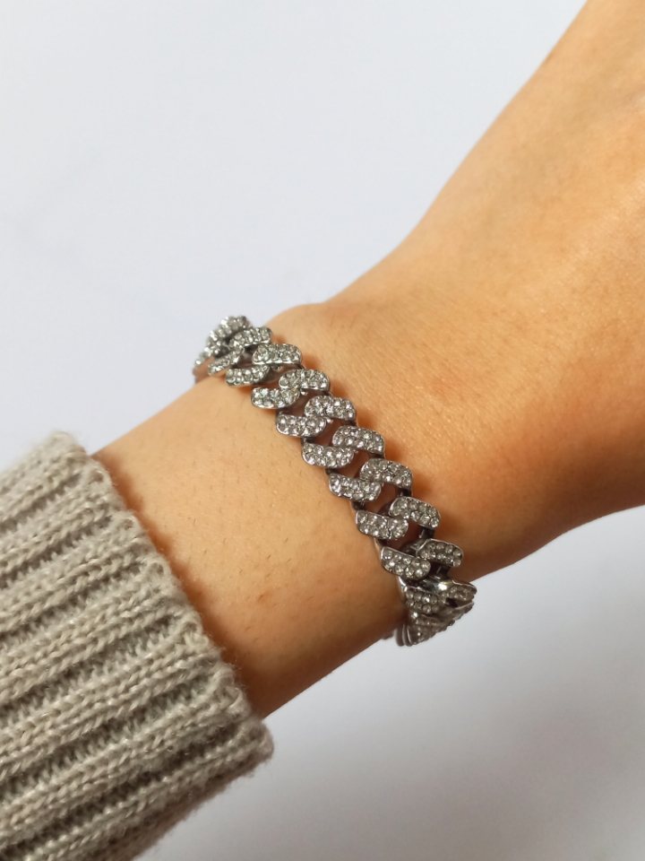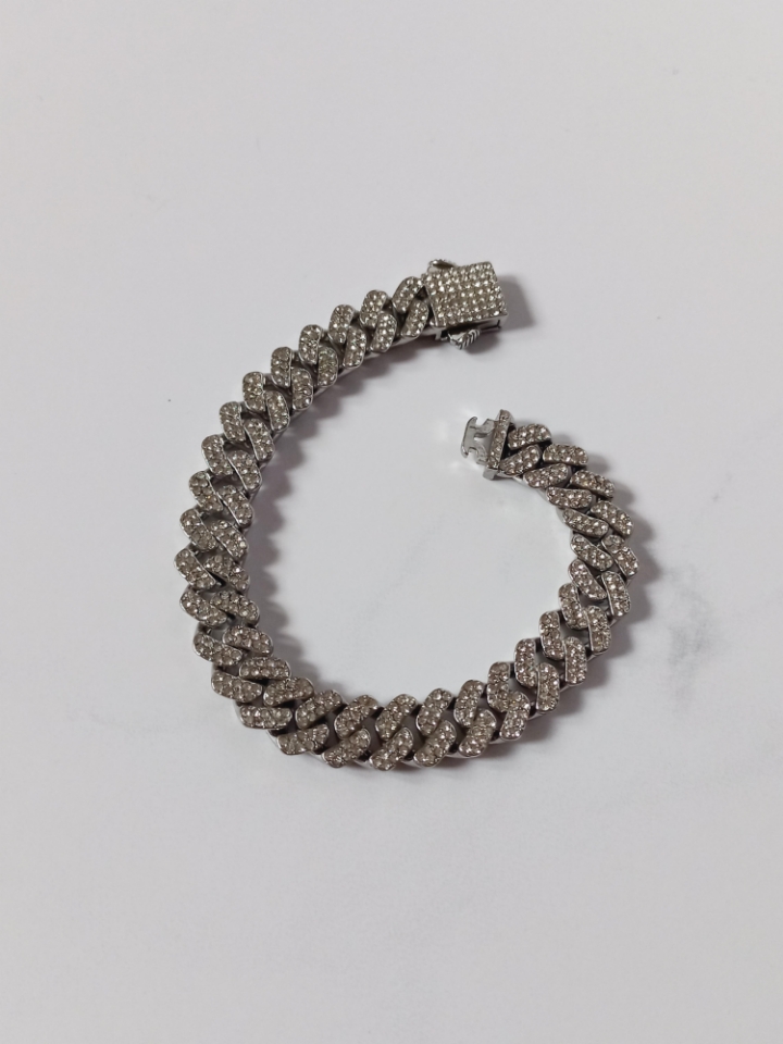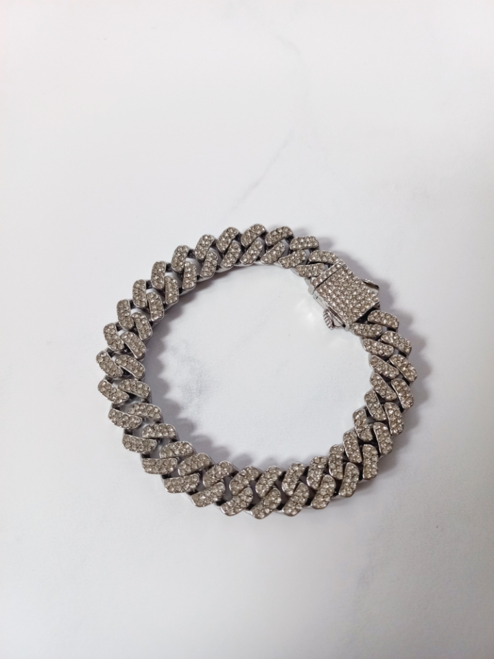 دستبند کارتیر فول نگین،نگین اتمی،استیل،طول دستبند ۱۸ سانت