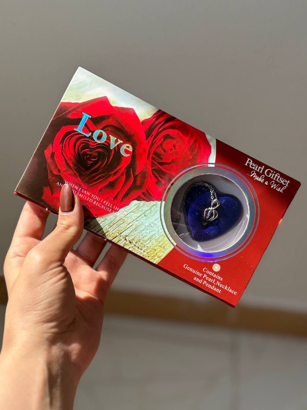 گردنبند مروارید عشق،جنس گردنبند و پلاک استیل،رنگ جعبه رندوم ارسال میشه،مروارید سفید